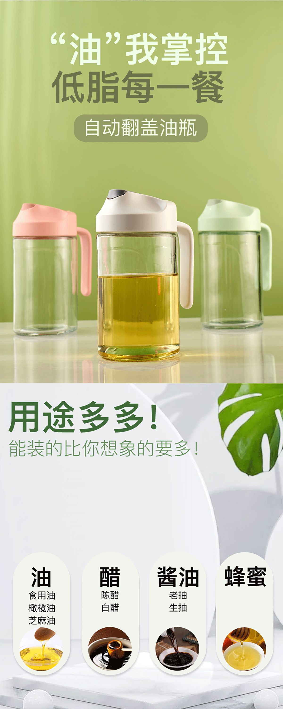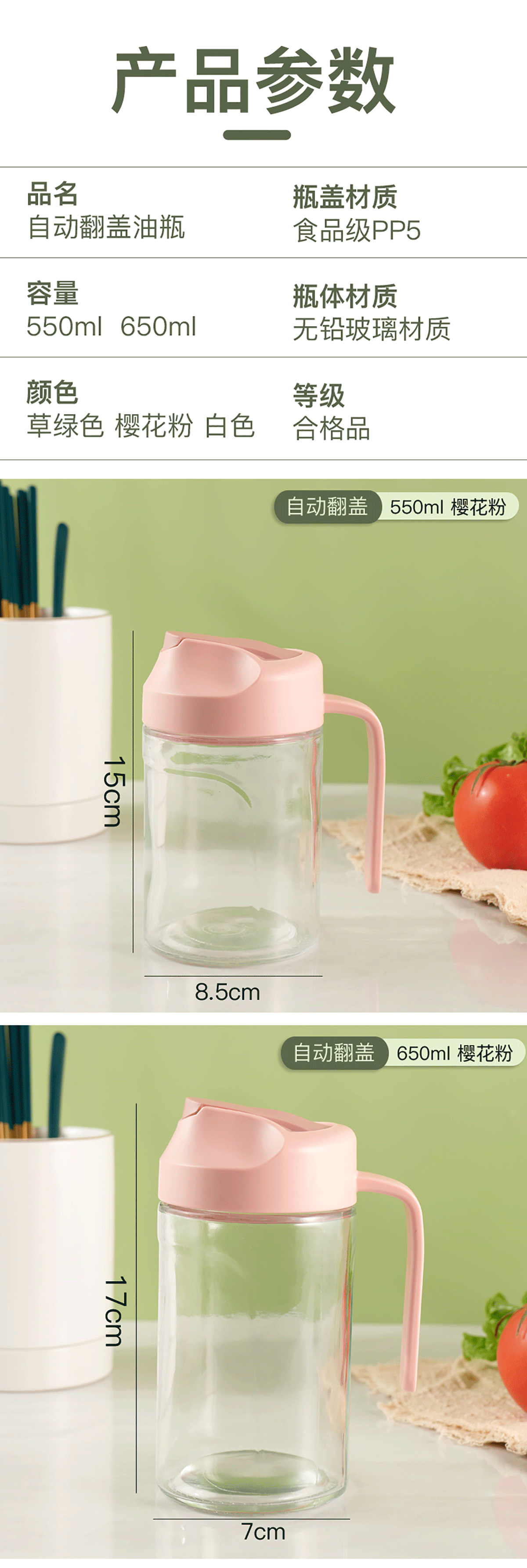 自動翻蓋玻璃油壺550ml/650ml