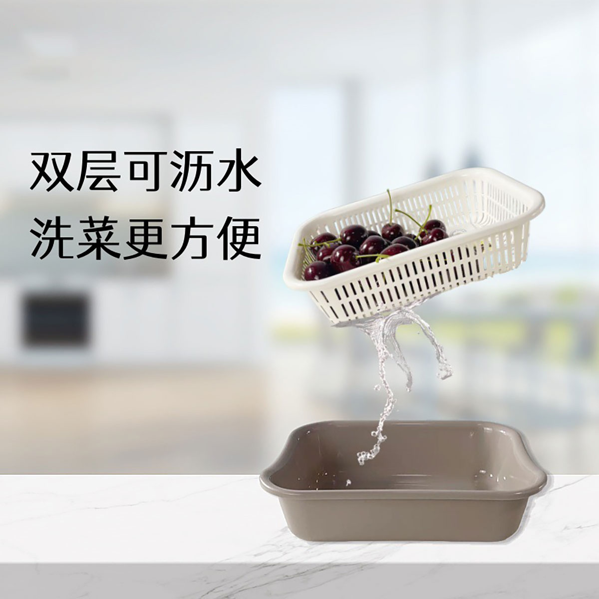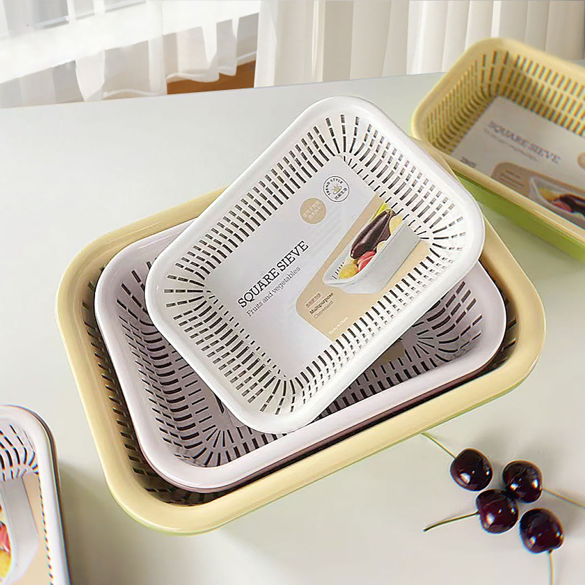 小號(hào)/中號(hào)/大號(hào)長(zhǎng)方果蔬篩(單層瀝水/雙層隔水) 2025新色