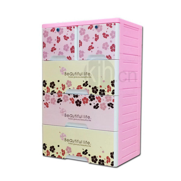 四層整理柜-帶鎖(富貴色彩花)