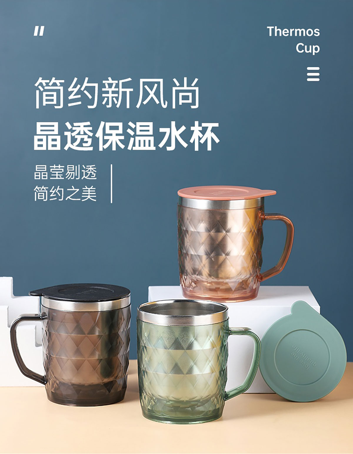 400ml菱形晶透保溫水杯