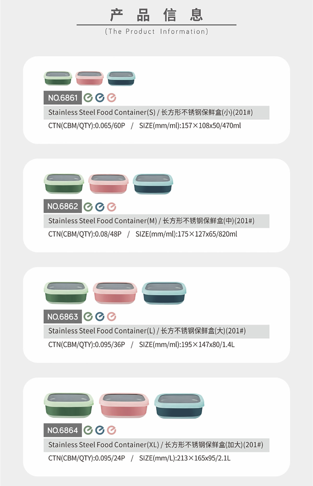 長(zhǎng)方形不銹鋼保鮮盒(小./中/大/加大)