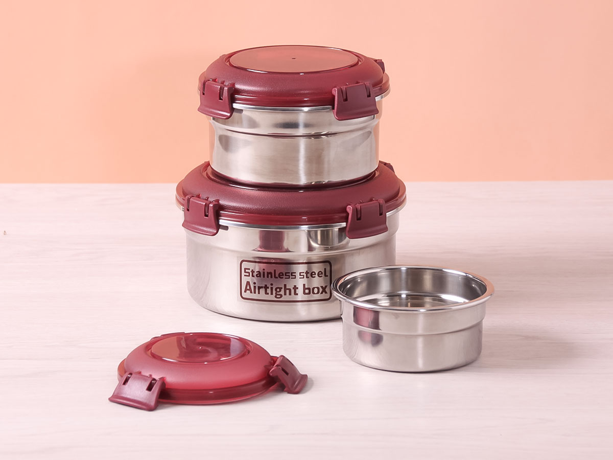 三套莊圓形不銹鋼密封盒(ABC)