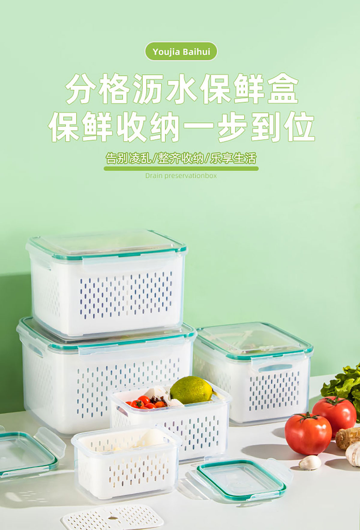 密封分格瀝水保鮮盒(850ml/1.85L/3.3L/4.55L/7.20L)