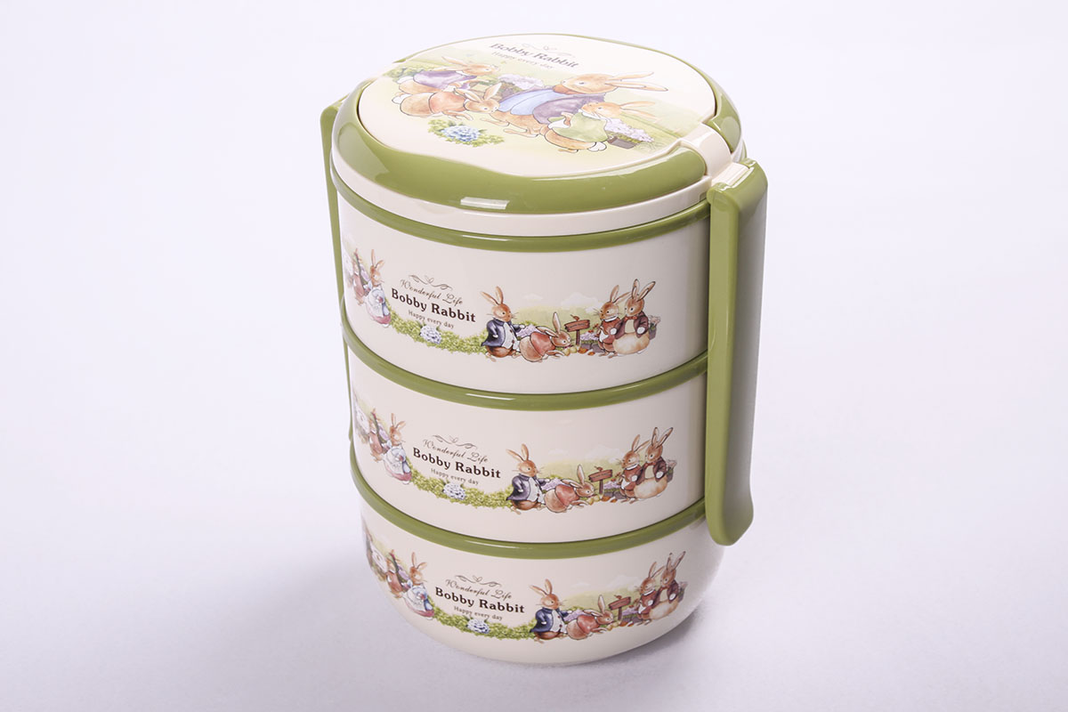 波比提手圓形三層保溫餐盒