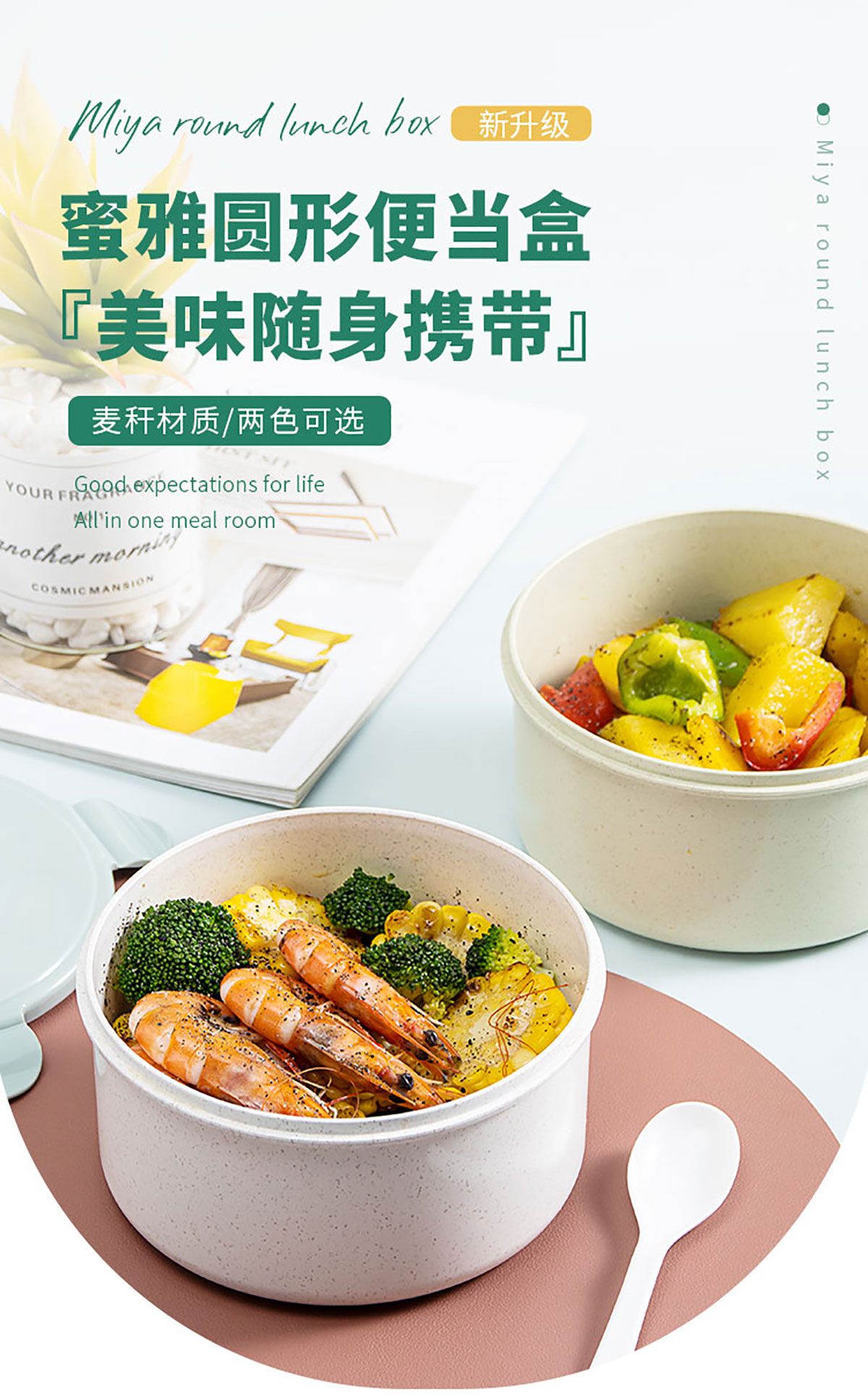蜜雅圓形便當盒(1280ml)