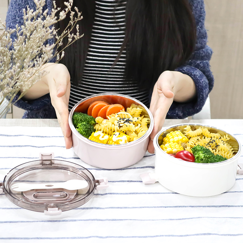 艾格不銹鋼提手單層飯盒(圓形)