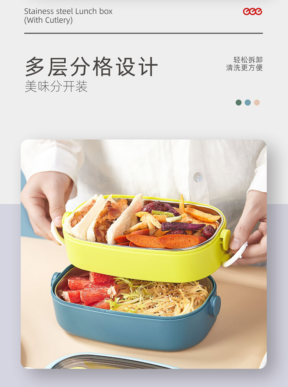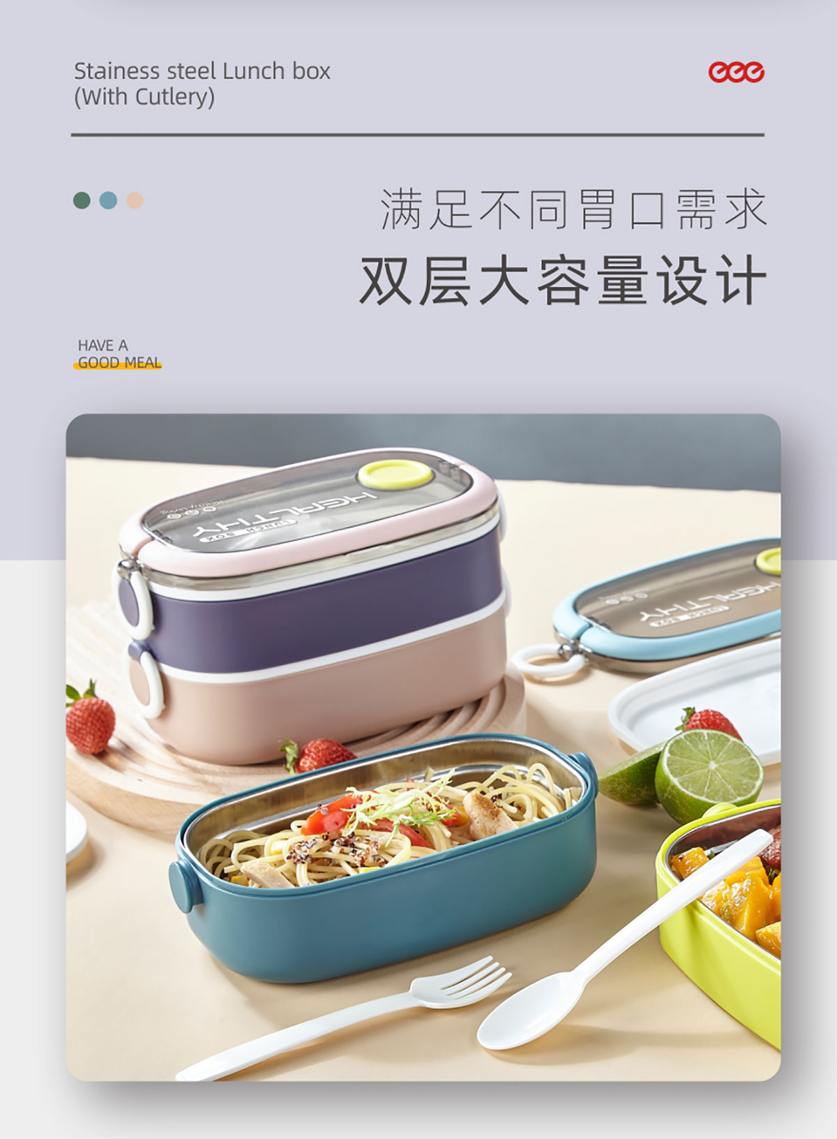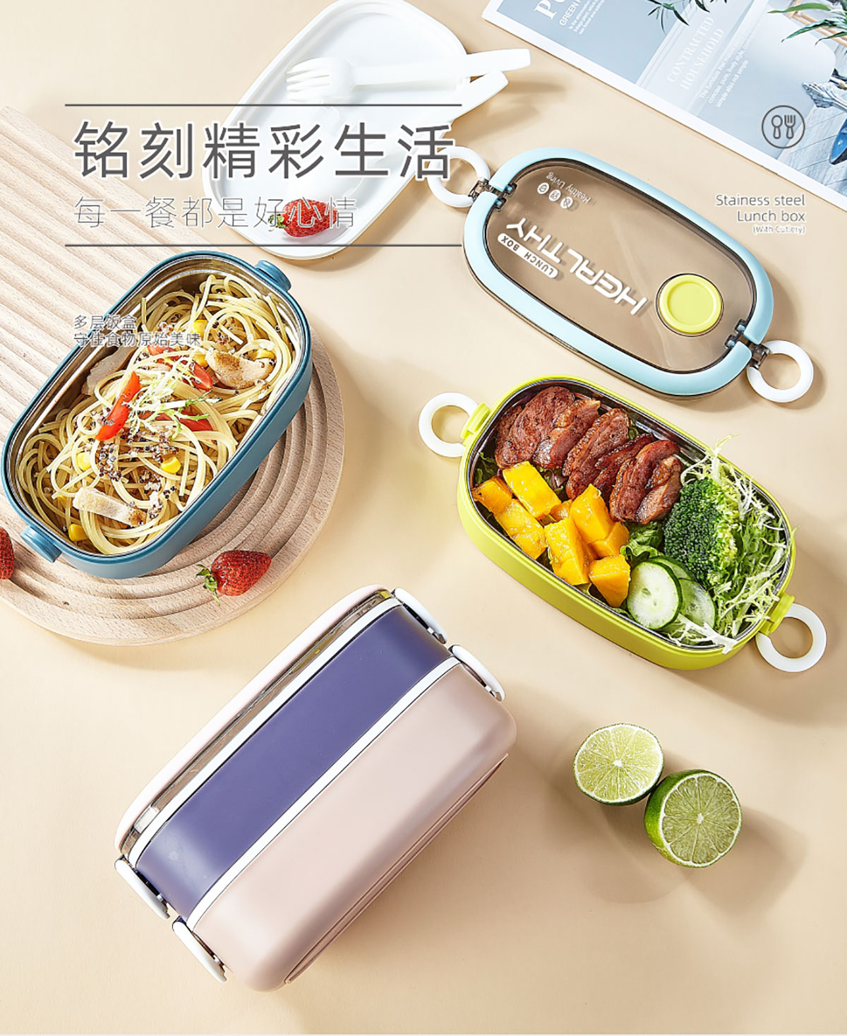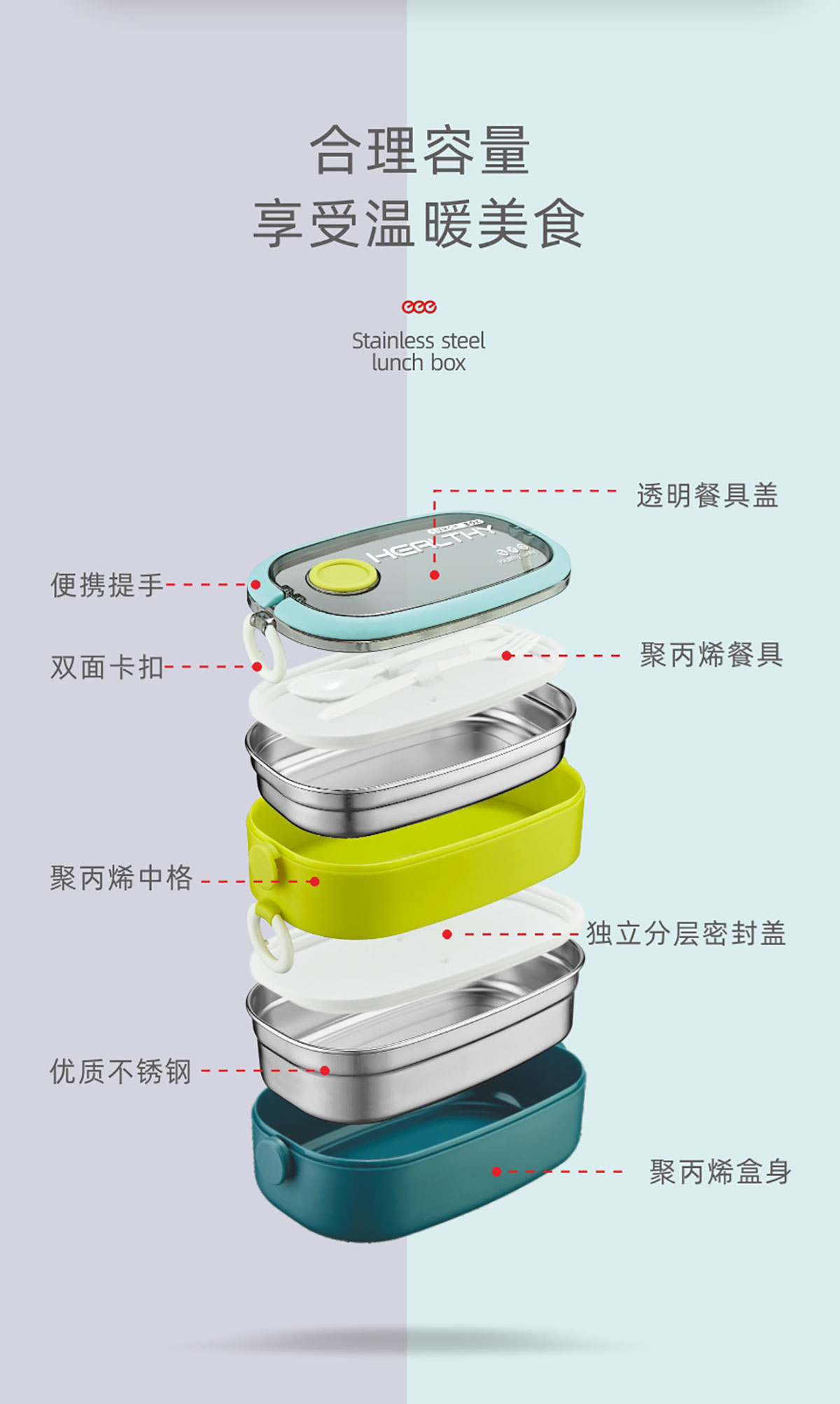 單層/雙層長(zhǎng)方形不銹鋼飯盒