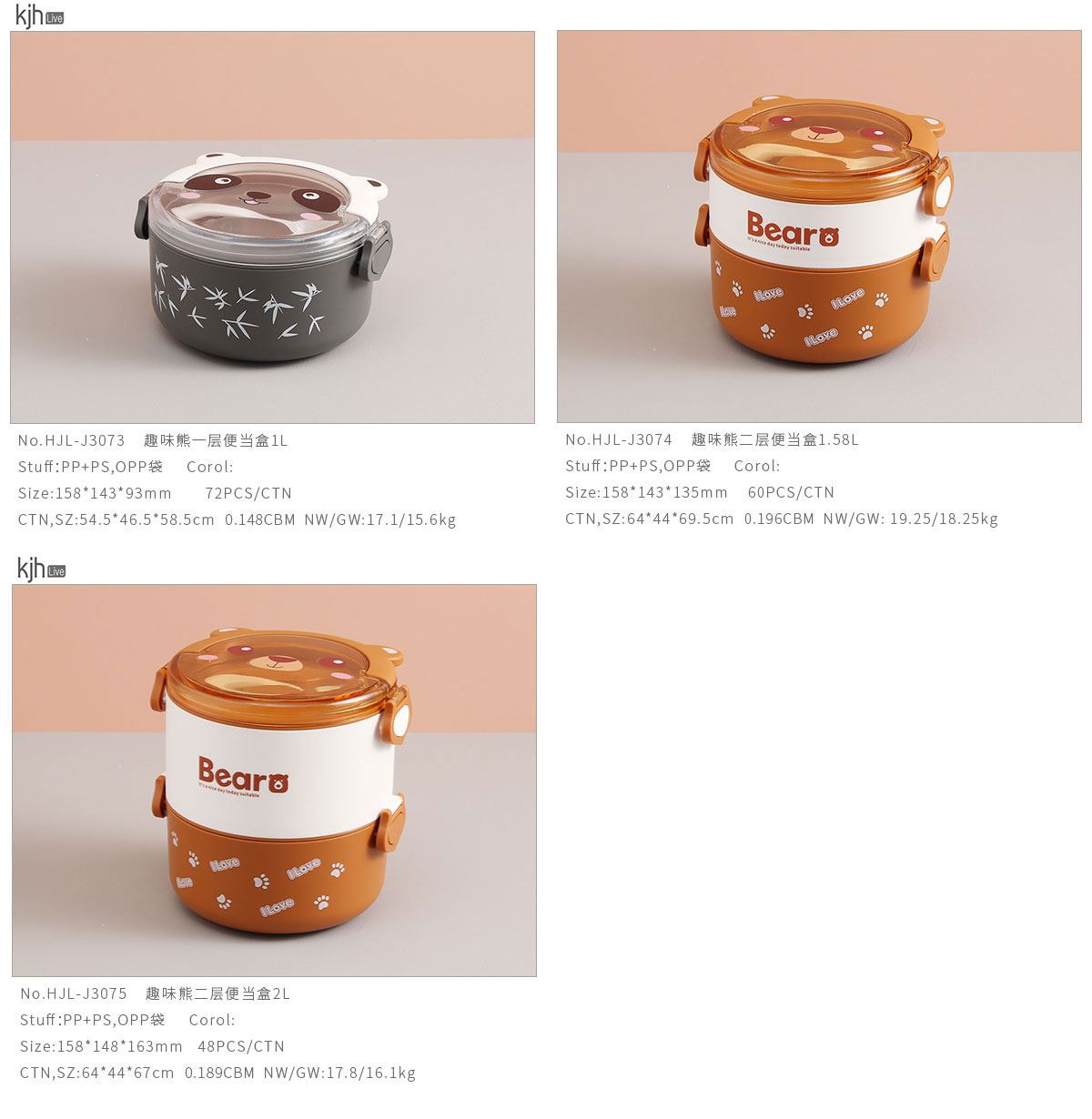 趣味熊一層/二層便當盒1L/1.58L/2L