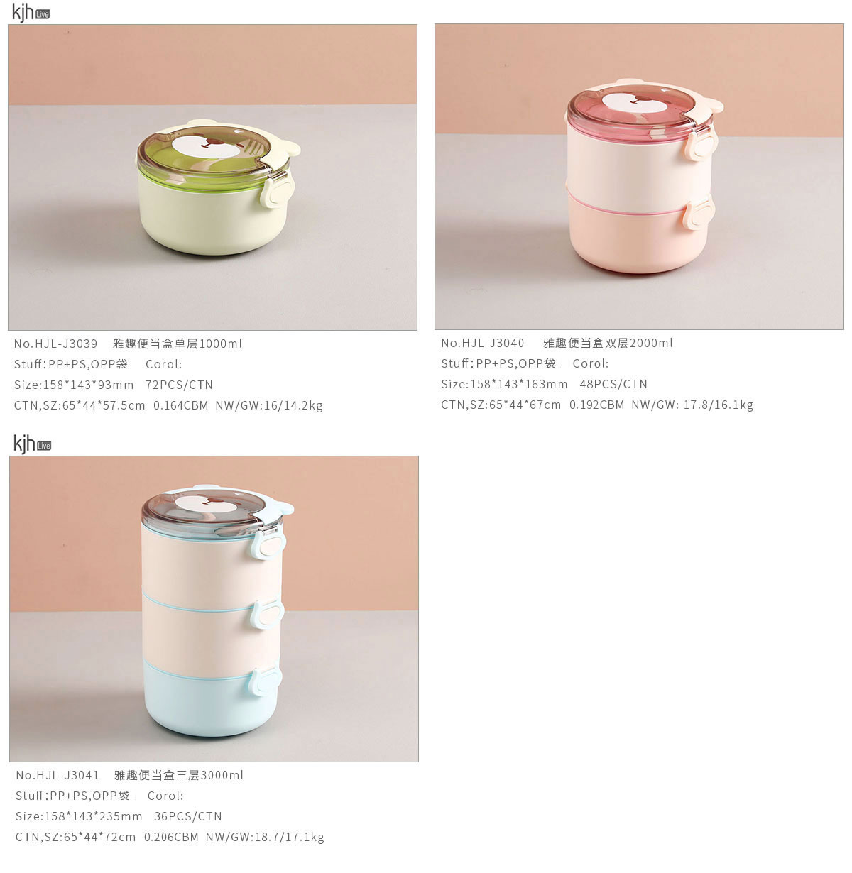 雅趣便當(dāng)盒單層1000ml/雙層2000ml/三層3000ml(2022年新色)