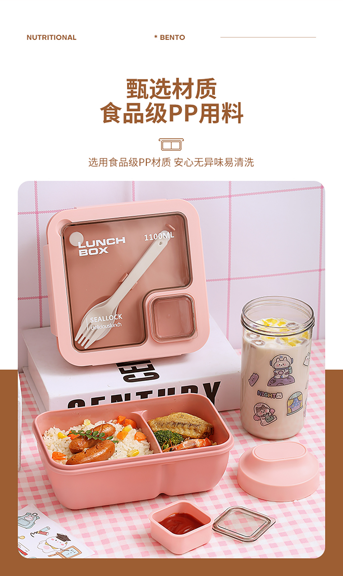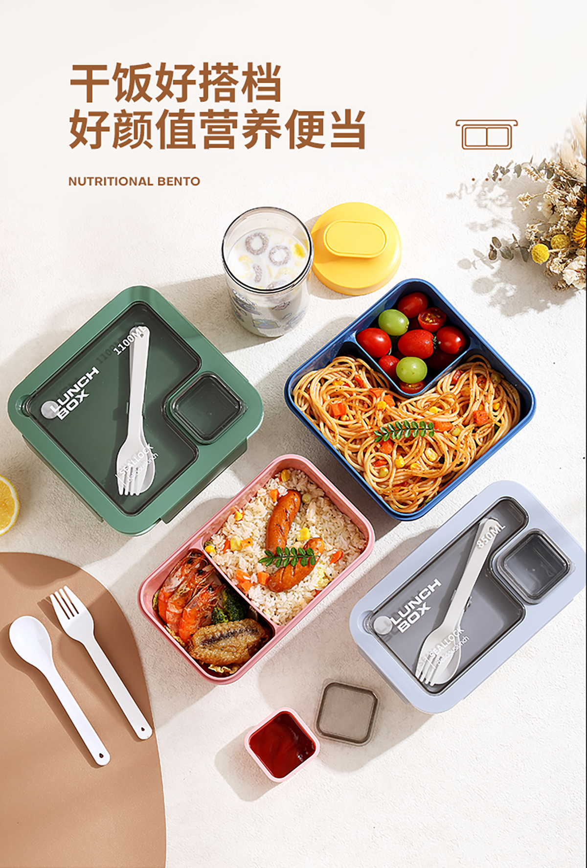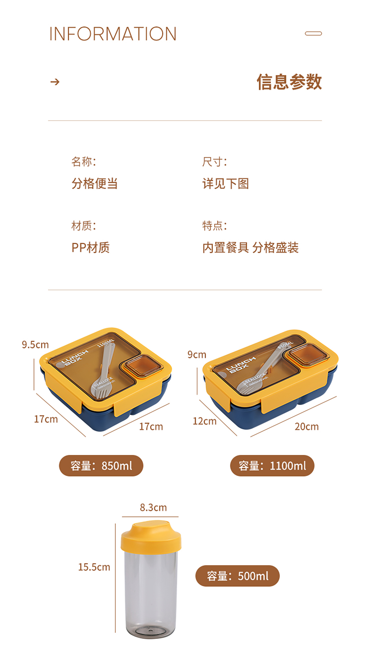 星樂輕食便當盒套裝(長方形850ml/正方形1100ml+水杯500ml)