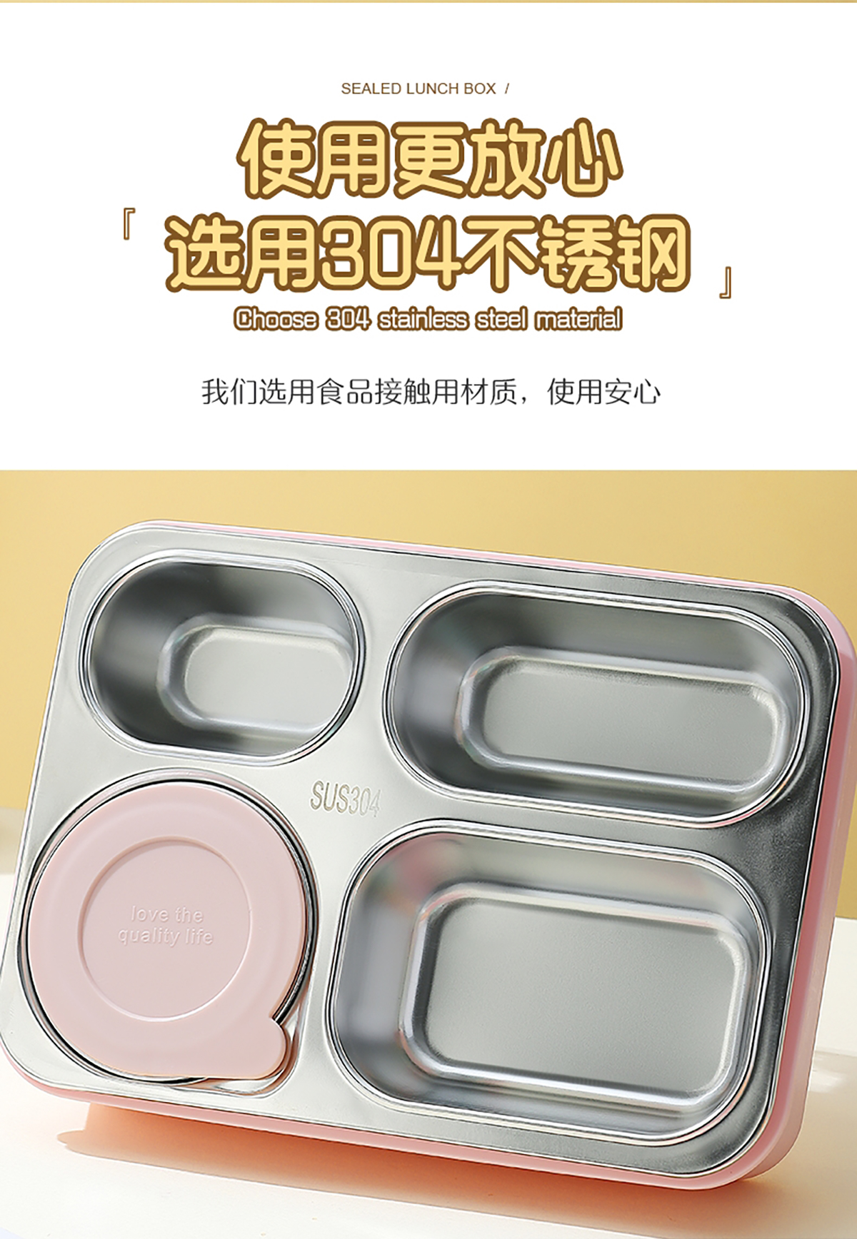 中號(hào)4格不串味不銹鋼餐盒帶碗800ml+150ml碗