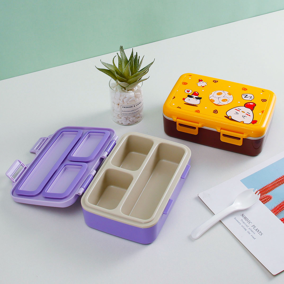 悠悅萌咭三格便當盒(670ml)