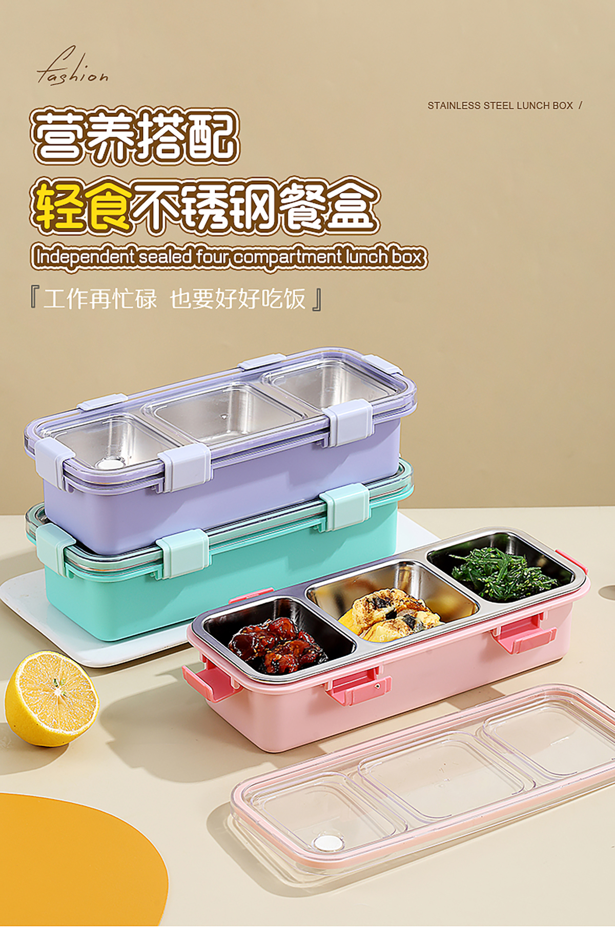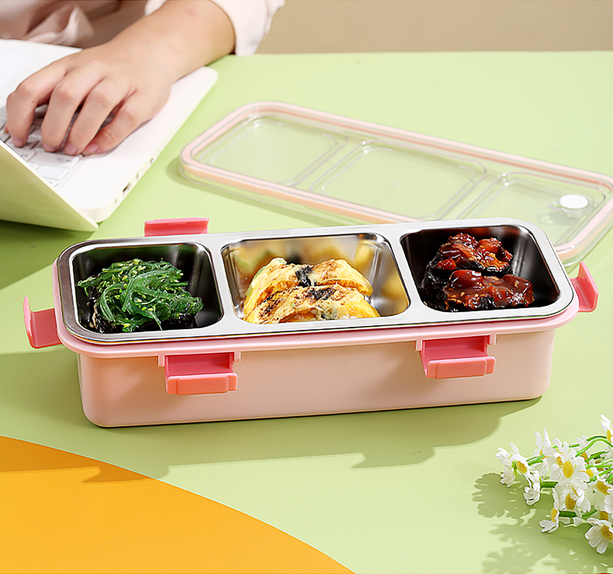 輕食不銹鋼餐盒三格585ml