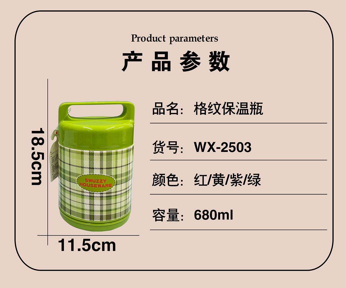 保溫瓶(全鋼內(nèi)膽)格紋680ml