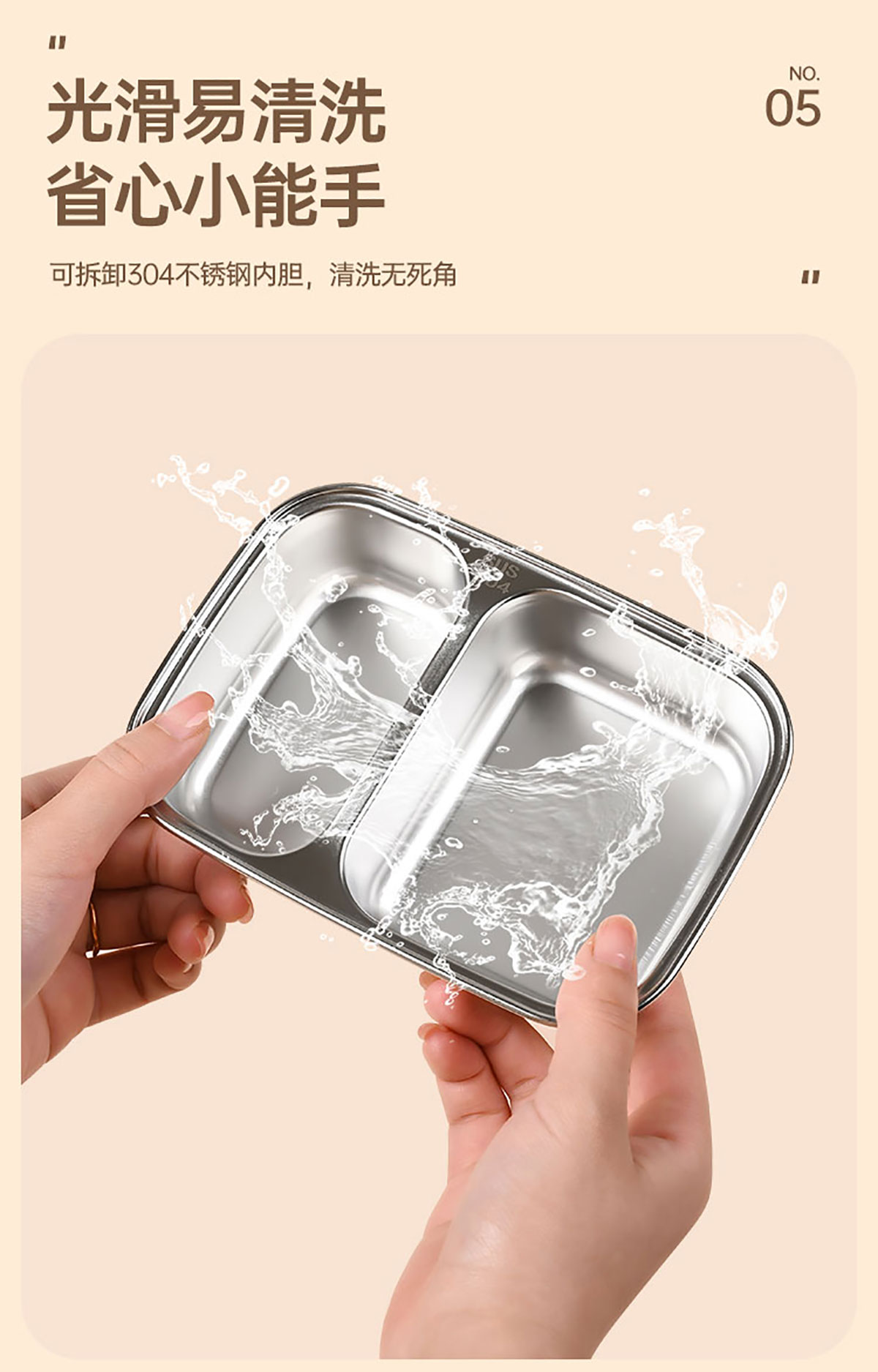 長方形分格不銹鋼便當(dāng)盒500ml