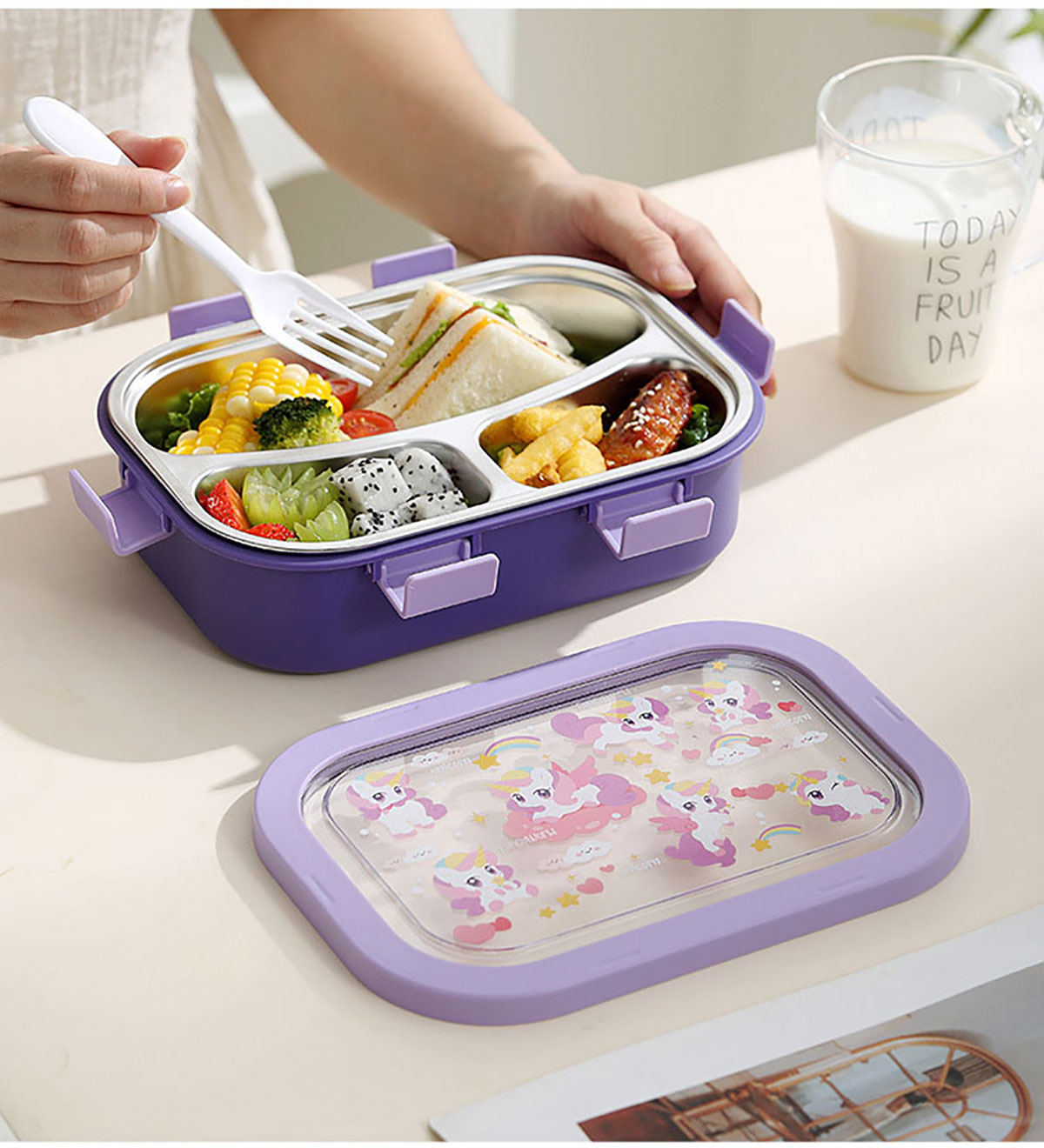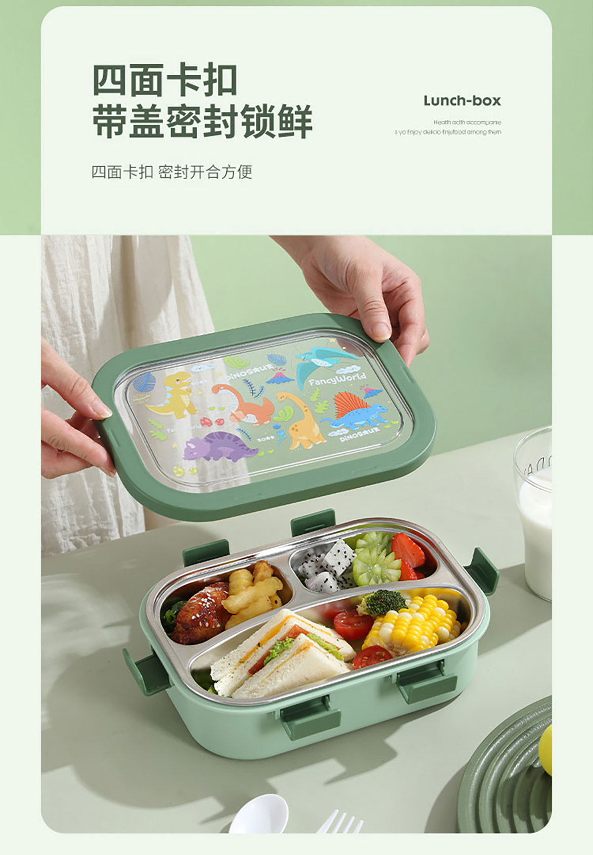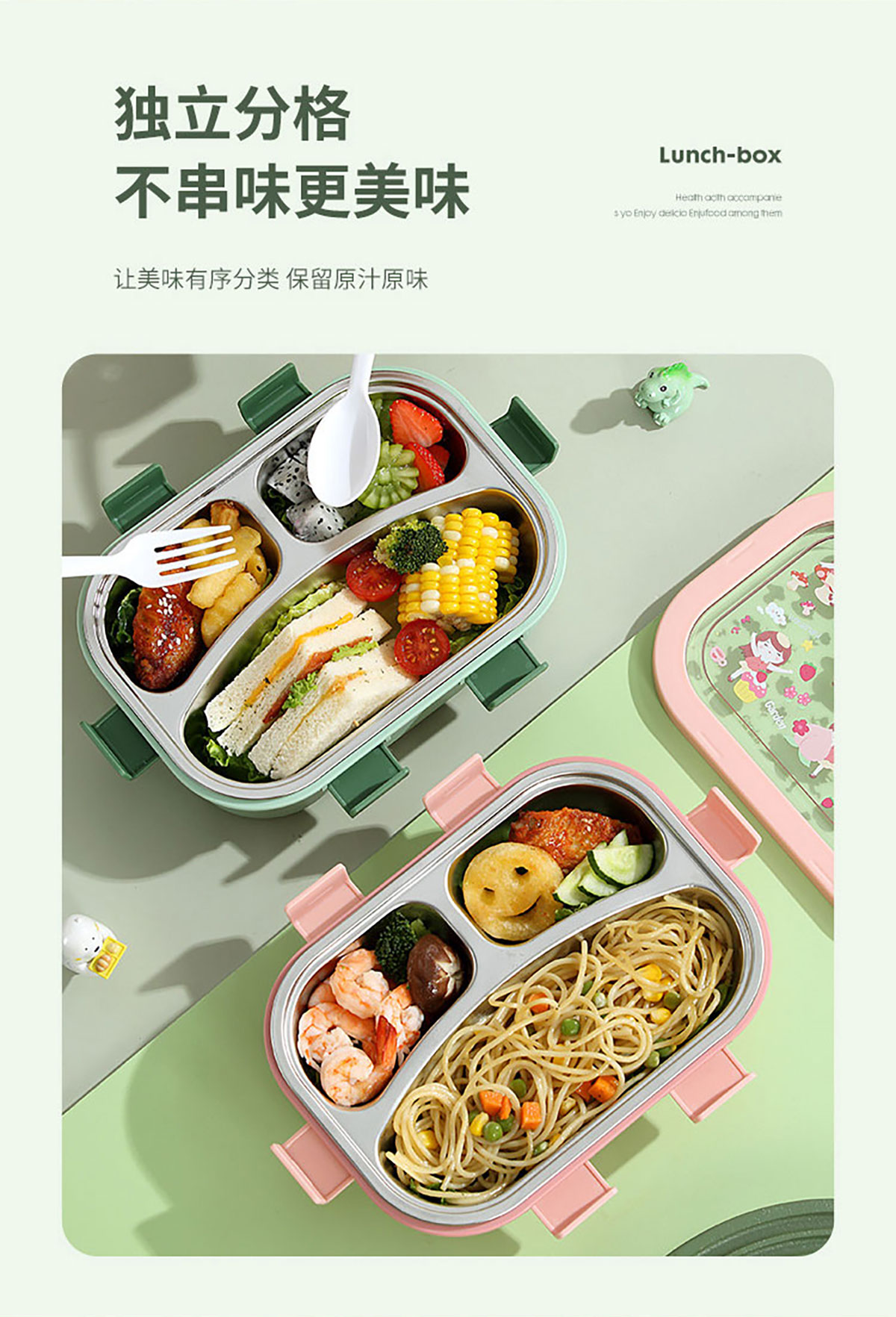 卡通不銹鋼飯盒(不銹鋼三格)850ml