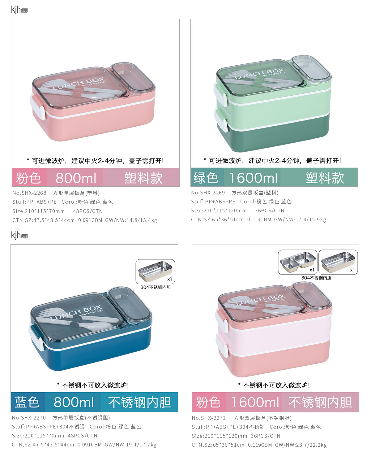 方形單層/雙層飯盒(塑料款/不銹鋼款)