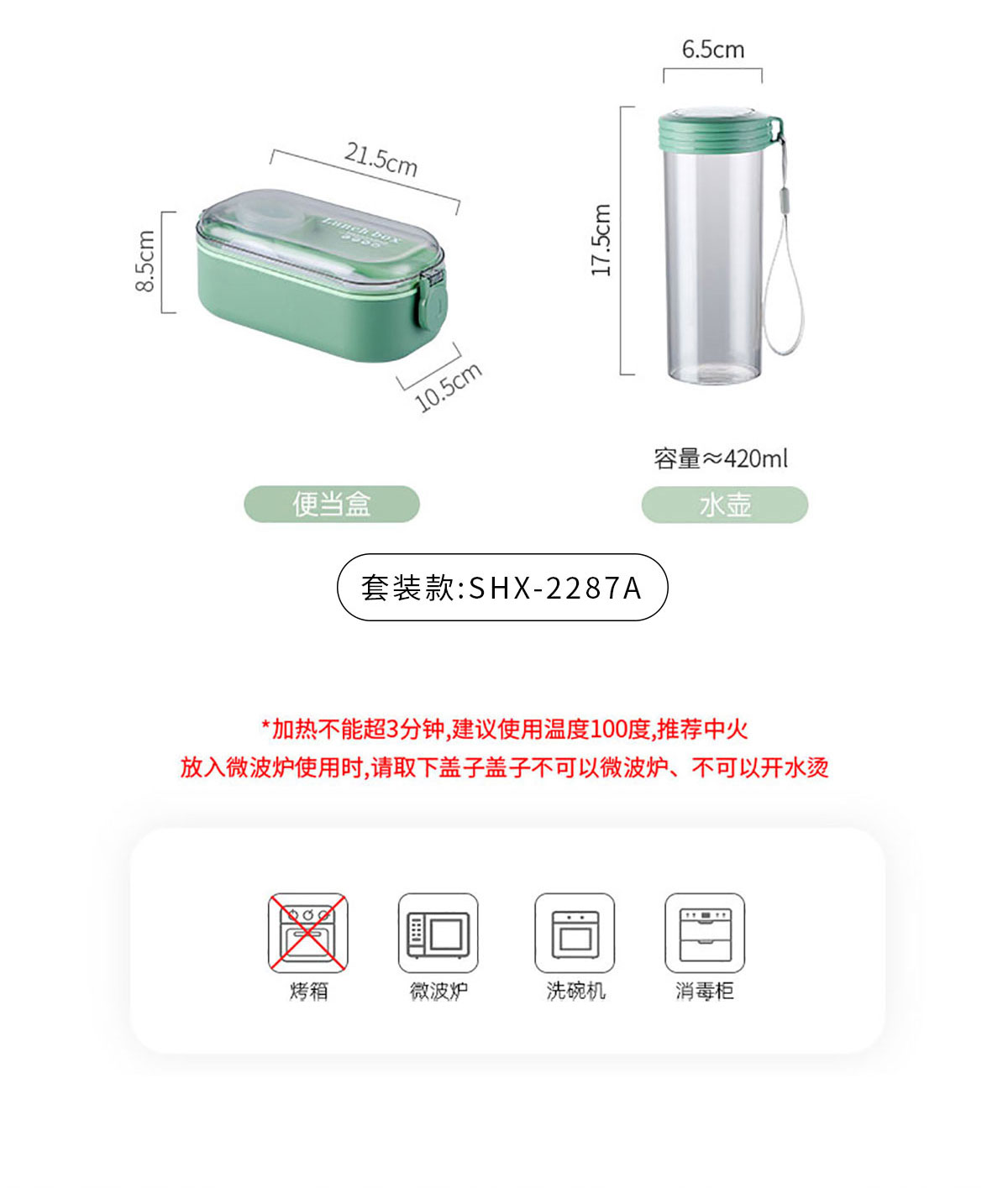 SHX-2287A:飯盒:215*105*85mm 水杯:Φ65*175mm