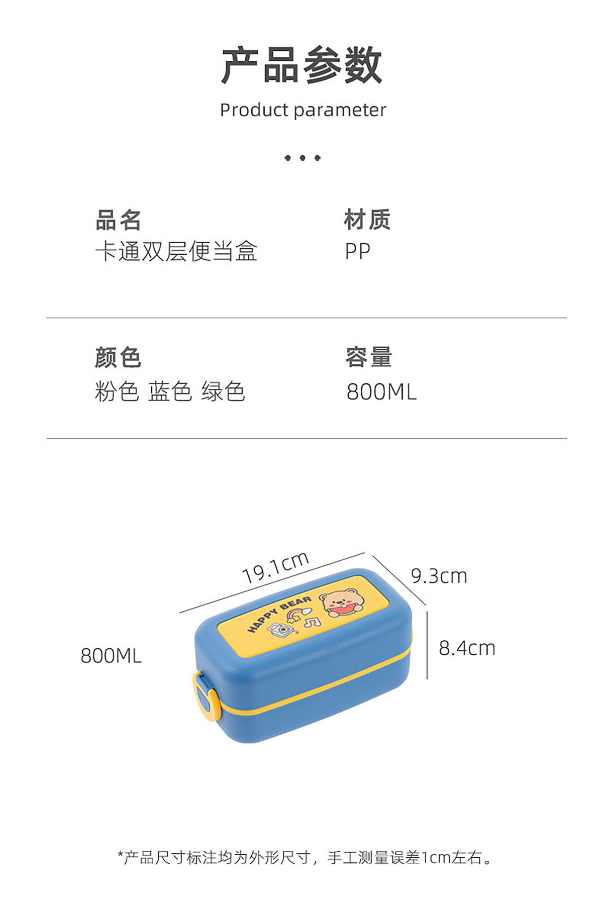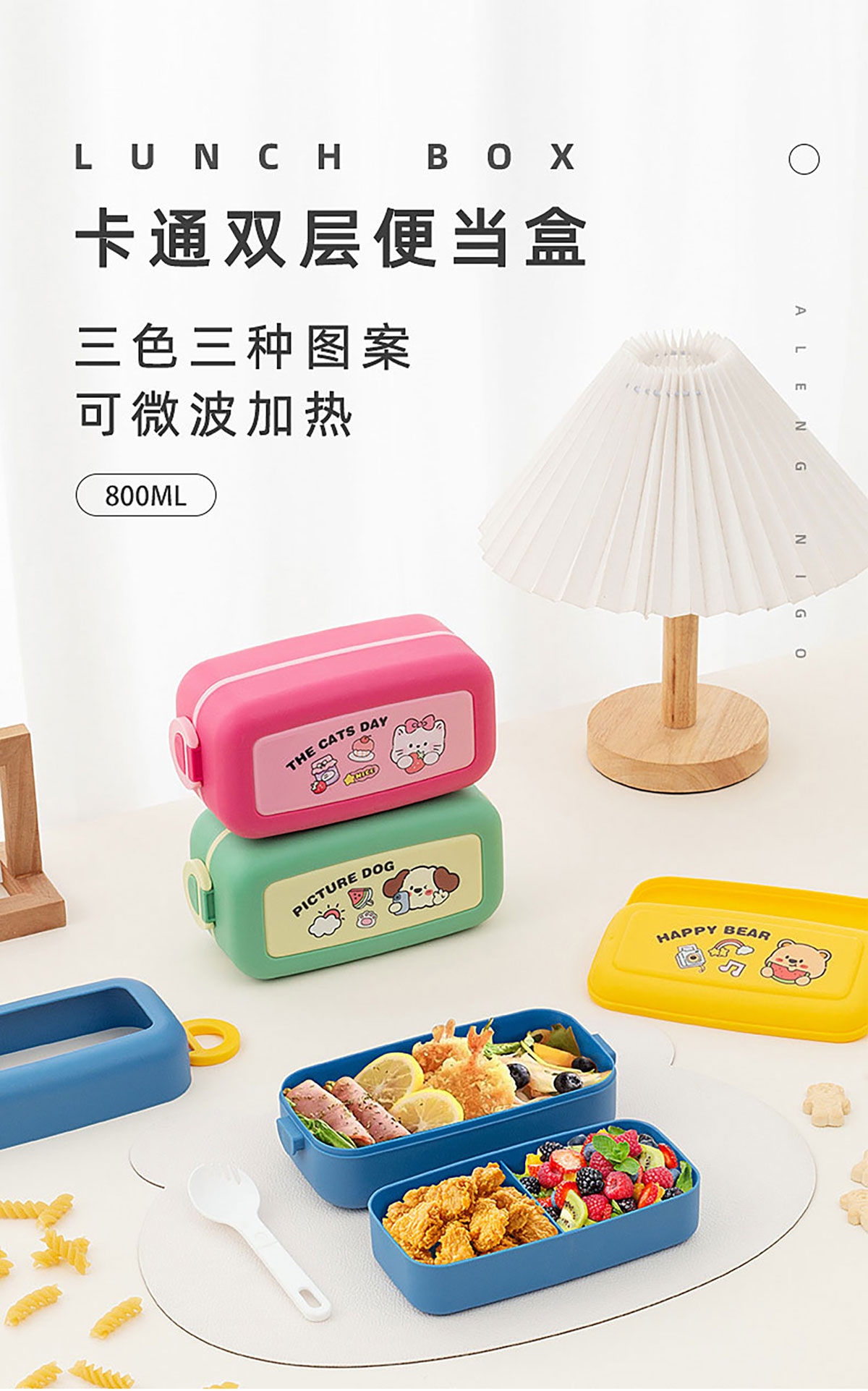 卡通小巧雙層分隔飯盒