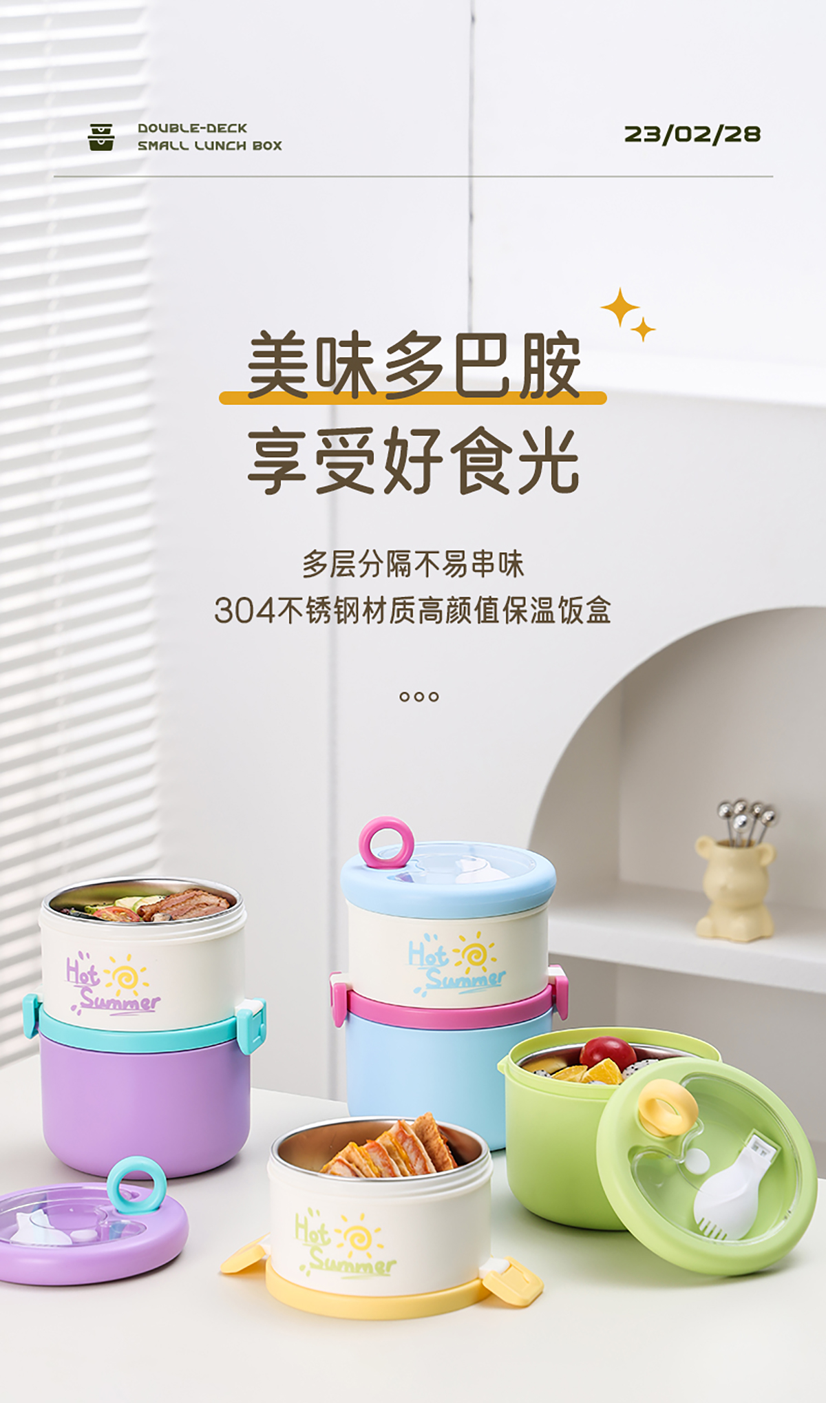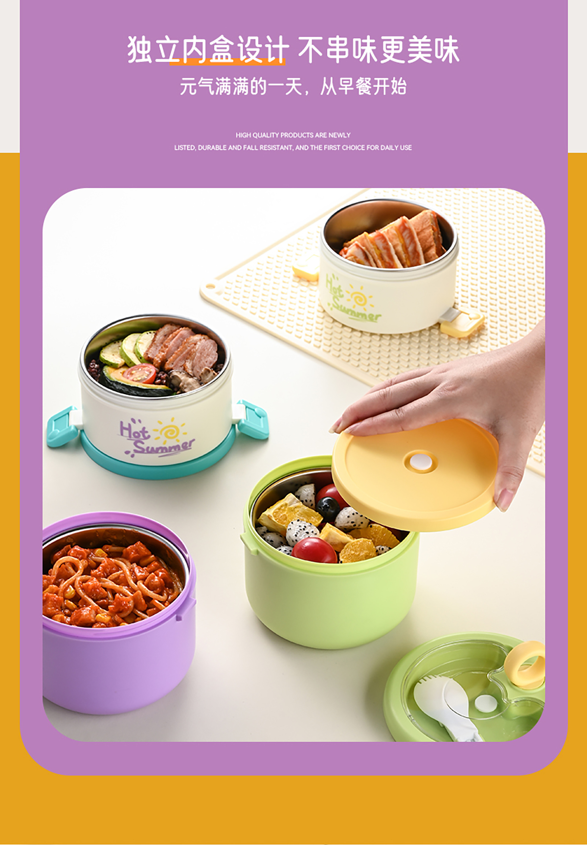 雙層不銹鋼便當(dāng)盒(不銹鋼款)730+550=1280ml