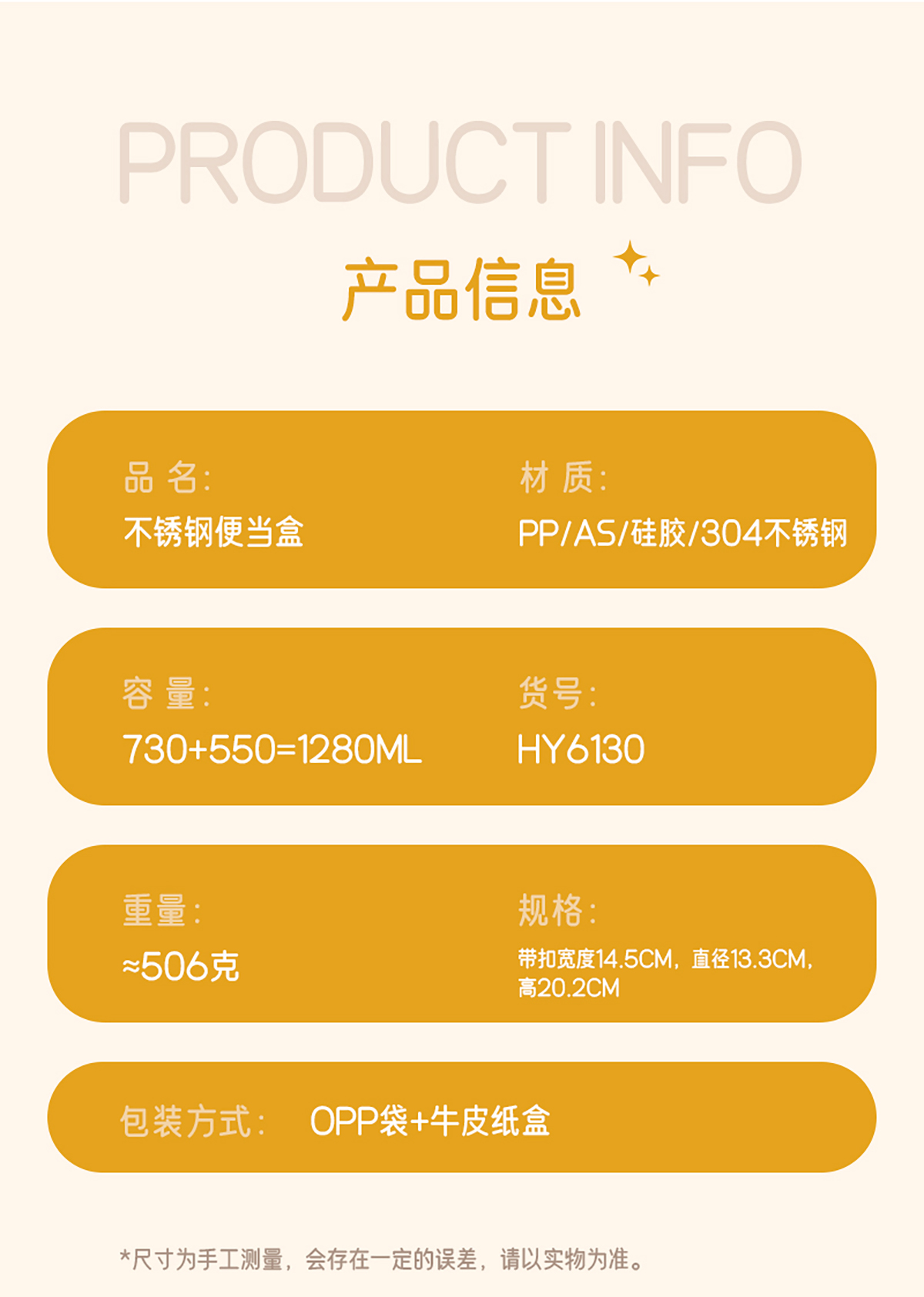 Size: 長145*直徑133*高202mm/730+550=1280ml