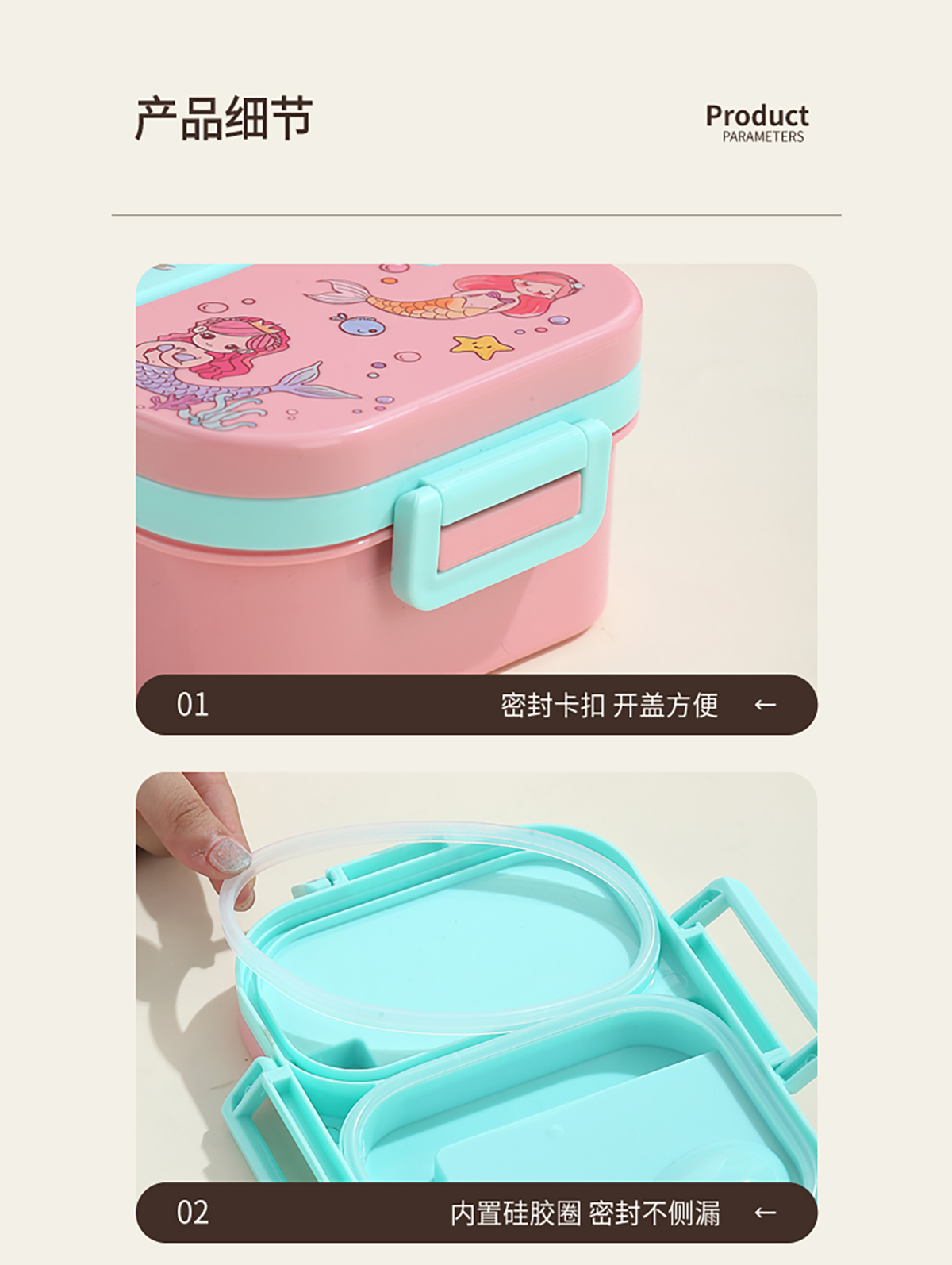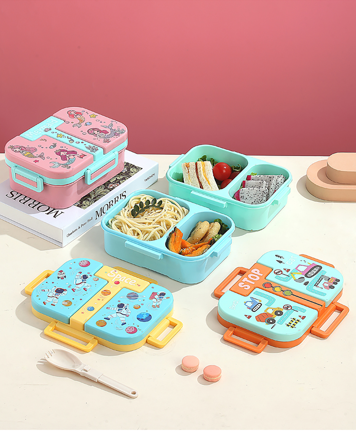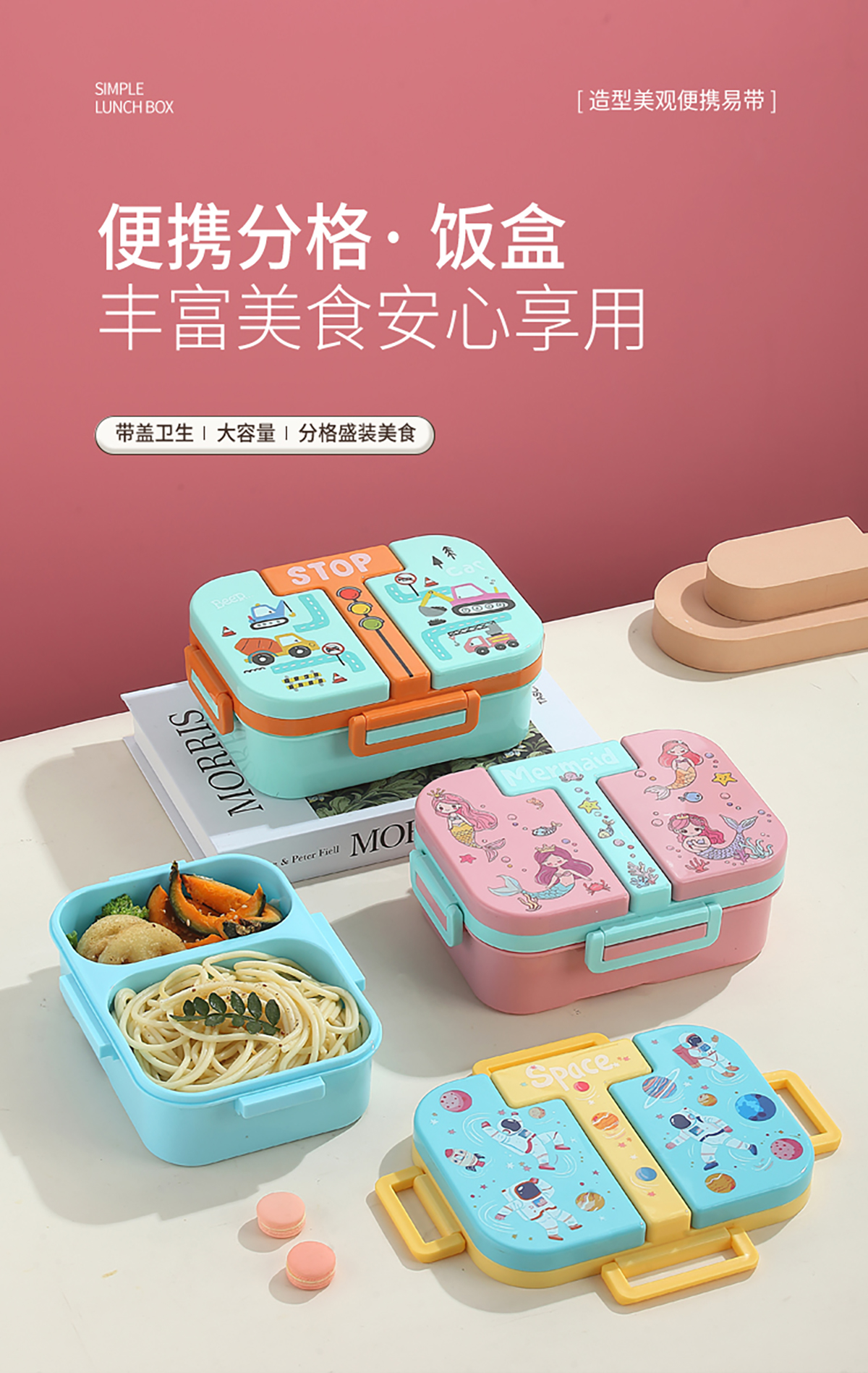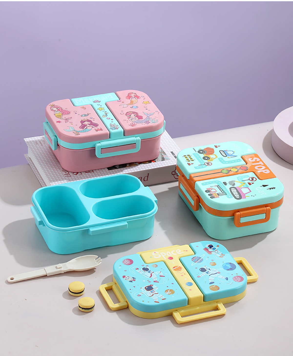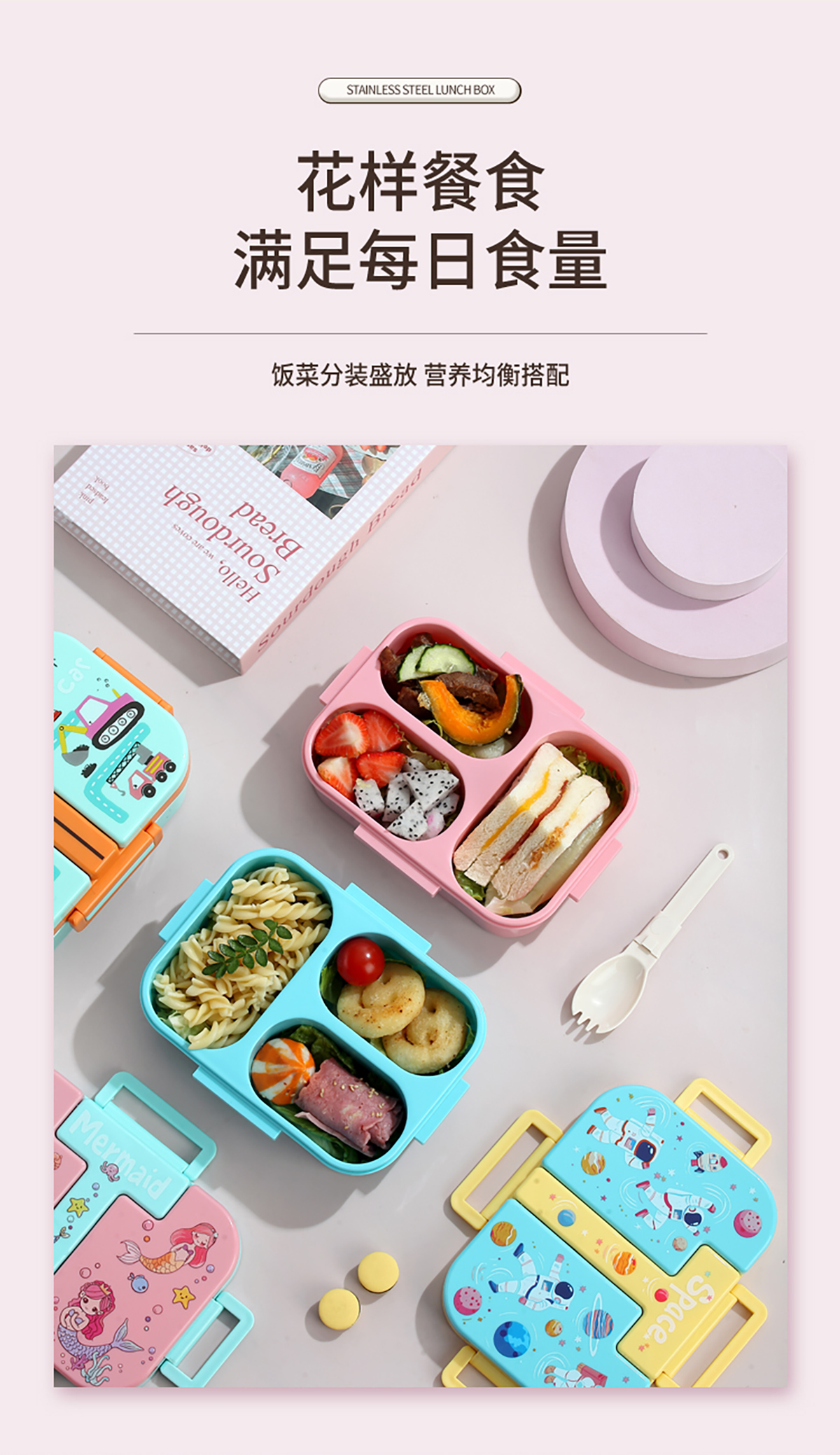 獨(dú)立密封童趣塑料餐盒2格900ml/3格850ml  (配PP折疊湯勺)