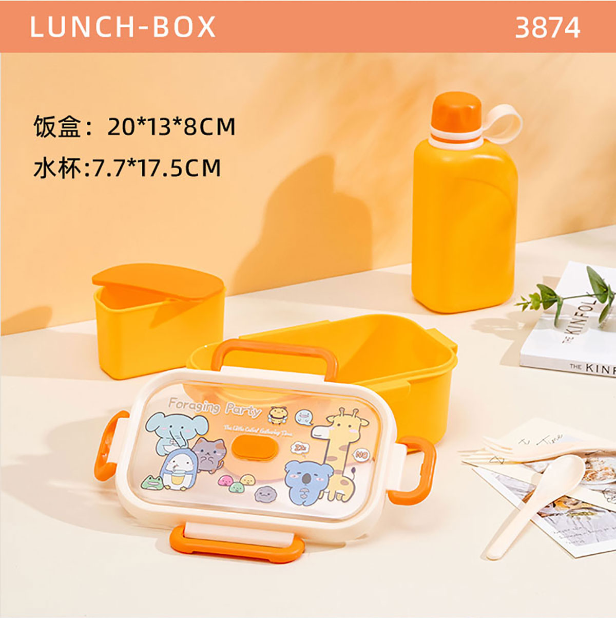 ZY-3874:飯盒:200*130*80mm/1000ml 水壺:77*175mm/500ml