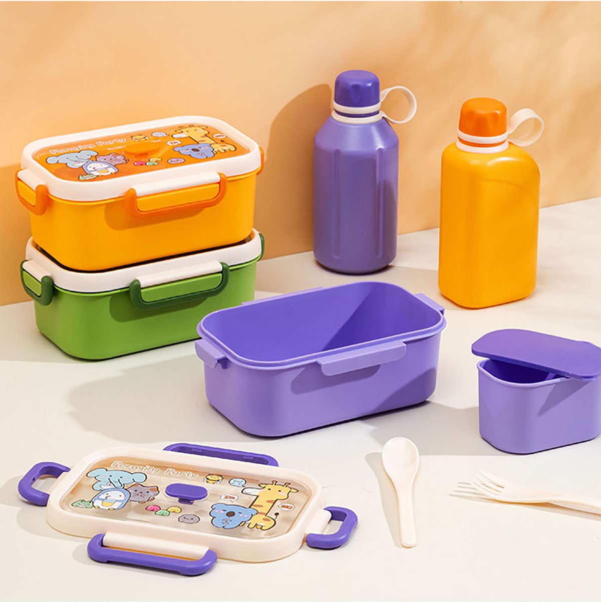 尚趣長方單層飯盒(1000ml)(含格子)/+圓形/方形運動水壺(500ml)