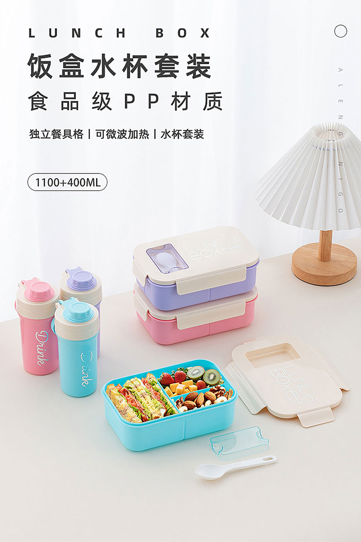 Size: 飯盒:205*135*80mm/1100ml 水壺:φ70*175mm/400ml